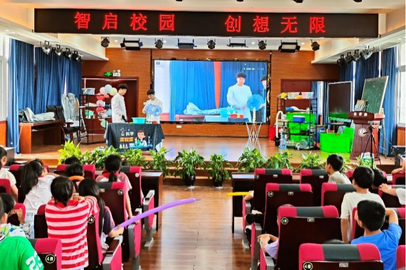 为贯彻落实科技部、中央宣传部、中国科协《关于举办2025年全国科技活动周的通知》及重庆市科技局相关工作要求,重庆三峡学院《关于在2025年重庆市科技活动周和全国科技工作者日期间开展特色科普活动的通知》(院科函[2025]05号)。2025年5月28日上午,由万州区科学技术协会、万州区教育委员会、万州区青少年宫主办,重庆三峡学院电信学院科普团队承办的科普活动在万州区熊家小学开展。由魏勇博士与研究生施成玲、唐鹏、杨静、向浩扬、岳宝杰组成的科普团队,围绕“矢志创新发展 建设科技强国”活动主题,为熊家小学500余名师生呈现趣味与科学深度融合的互动科普实验秀。