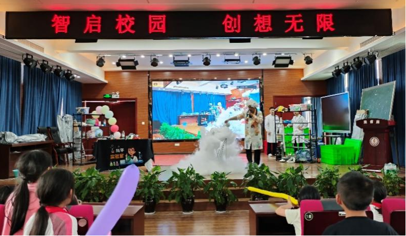 上午10时,科普团队播放科普暖场视频,放飞30个彩色气球,瞬间点燃师生热情,拉开熊家小学科普盛宴的帷幕。活动中,20余项科普实验轮番上演。空气大炮、马德堡半球实验、水顶球、气球飞轮、超级肺活量等十余项物理实验,为熊家小学的学生们深度讲解了伯努利效应;液氮蘑菇云、面粉爆燃、闻干冰味道、火焰掌等十余项化学实验,为熊家小学学生带去了一场别开生面的化学盛宴。