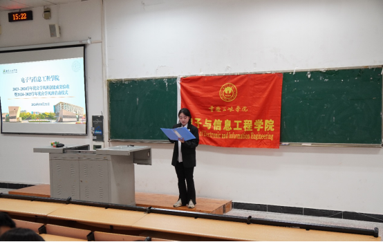 会上,各班代表围绕班级概况、创建目标、创建措施和创建成果等多方面进行汇报,展现出电信学子积极向上的精神风貌和扎实的专业素养。最后,黄异对本次大会进行总结发言,充分肯定参评班级在学风建设上取得的成效,他强调各班级应以本次活动为契机,进一步加强学风建设,积极争先创优,以先进班级为榜样,不断总结凝练。同时,坚持目标导向和问题导向相结合,继续发扬团结协作、勤奋好学的精神,积极营造比学赶帮超的浓郁氛围,力争在班级学风建设和增强班级凝聚力上再创佳绩。