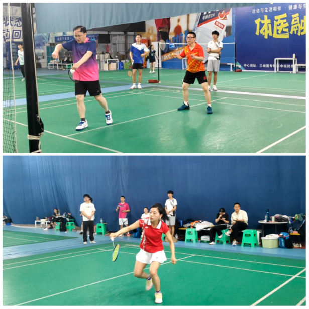 本次比赛分为教师队与学生队两大阵营,设置男单、女单、男双、女双和混双及师生搭档双打六大项目。赛场上,师生们褪去课堂上的严肃,化身活力四射的运动员,高远球、扣杀、劈吊等精彩动作频现,展现出精湛的球技与默契的配合。师生搭档双打环节成为全场焦点,教师与学生在并肩作战中增进默契,场边观众的加油声、欢呼声此起彼伏,现场气氛热烈欢快。
