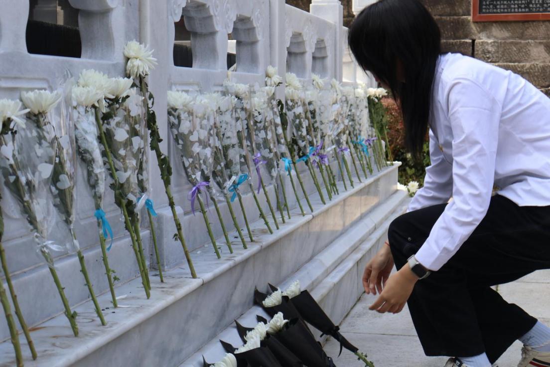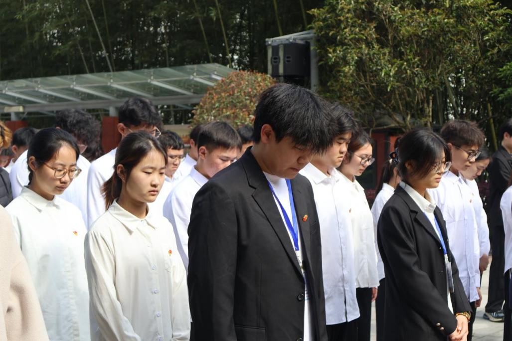 随后,全体师生肃立默哀,手持白菊,向烈士墓碑敬献鲜花并鞠躬致敬,以庄严的仪式缅怀不朽英魂。学生代表发言表示,将以英烈为榜样,把追思转化为勤学实干的动力,以专业所长践行青年担当、报效祖国。