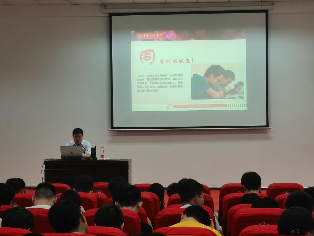 首先,王峰学长概括性的叙述了自己的职业经历,通过小故事引导同学们在大学期间应当树目标,有反思,并指出一个人的职业发展与读书期间的选择和规划密切相关。接着,王峰学长为大家分析了学院专业的就业情况与就业竞争压力,他表示,读书是为了给予自己在人生道路上选择的权利,也是为了有更多的选择和机遇。最后,王峰学长为学弟们分析了当下的考研情况以及考研所需要的心理准备,他祝愿同学们走上自己想要的道路,最终找到适合自己的工作。