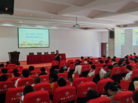 为引导学生明确毕业实习的目的和意义,帮助学生树立正确的实习观念,明确实习任务,以全面提升实习质量,5月23日下午,我院在明辨楼2栋104举办了2021级本科生实习动员大会。院长谭泽富、党总支副书记黄异、副院长王安蓉、实验室主任胡政权、2021级辅导员以及2021级全体学生参加会议,并邀请了甬矽电子股份有限公司、云尖信息技术有限公司、舜宇光学股份有限公司、紫光未来科技有限公司、欧菲光集团股份有限公司、极氪基地6家企业进行宣讲。会议由辅导员肖红锦主持。