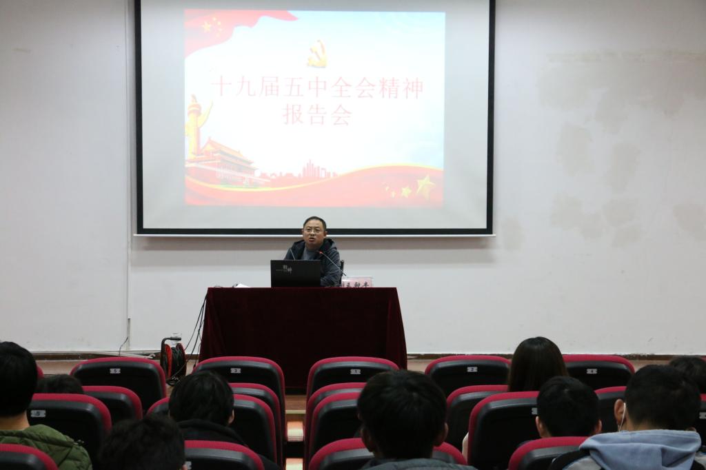 王书记在报告中首先阐述了党的十九届五中全会召开的重大意义。他讲到,这次全会是我们党在全面建成小康社会即将收官、全面建设社会主义现代化国家新征程即将开启的重要历史时刻召开的一次十分重要的会议。随后,王书记围绕学习贯彻习近平总书记在党的十九届五中全会上的重要讲话精神和全会通过的规划《建议》,从规划《建议》起草制定过程,新发展阶段面临的机遇和挑战,新发展阶段的发展目标和总体要求,构建新发展格局的主要任务和举措,坚持党的全面领导、齐心协力为实现“十四五”规划和2035年远景目标而团结奋斗等方面,对全会精神作了系统阐述和深刻讲解。期间,王书记特别强调同学们要多了解国家方针,通过多渠道,多方式了解国家大事,更加紧密团结在以习近平同志为核心的党中央周围,以更加昂扬的斗志、旺盛的干劲、务实的作风、崭新的业绩为夺取全面建设社会主义现代化国家新胜利贡献出青春力量。