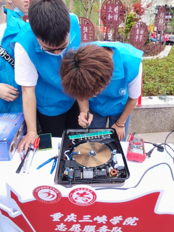 2021年4月15日下午,2003网站太阳集团党总支学生党支部、电子科技协会在万州区牌楼街道举办了“学生党员进社区、义务维修显真情”义务家电维修。本次活动宗旨在为社区居民提供便利,提升我院学子自我奉献精神,发挥我院学生党员的先锋模范作用,展现三峡学子的风采。