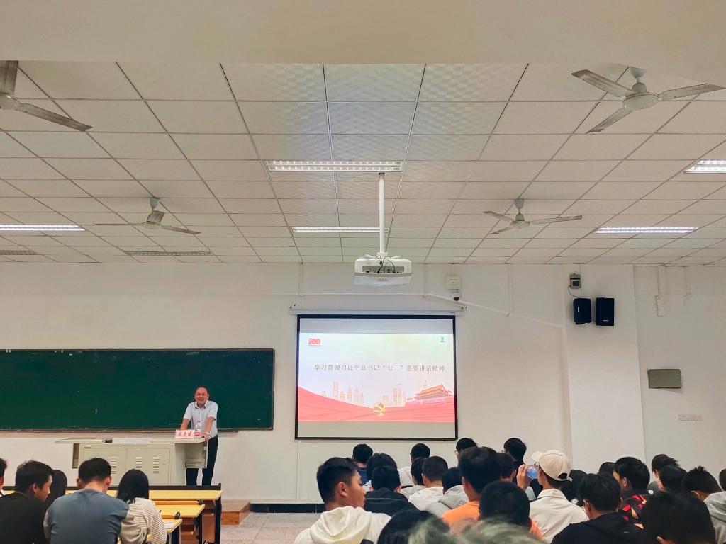 10月13日晚上,2003网站太阳集团党总支副书记牟奇建在明辨楼2栋207宣讲习近平总书记“七一”重要讲话精神,2021级电子信息工程专业全体同学参加。