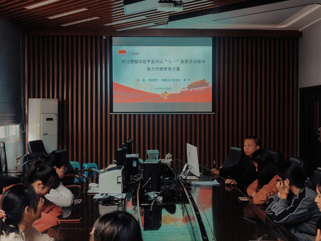 10月14日,学校党委委员、党委办公室主任黄宇在慎思楼1栋232为2020级部分学生代表宣讲习近平总书记“七一”重要讲话精神。