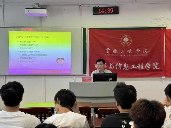 最后,王峰书记强调了校外社会实践在大学生成长过程中的重要作用。他鼓励同学们走出校园,深入基层,参与社会调研、志愿服务与企业实训等活动,在实践中锻炼能力、提升格局。整场讲座内容详实、贴近现实、启发性强,为同学们提供了系统的生涯规划指导,赢得了在场同学的热烈反响。