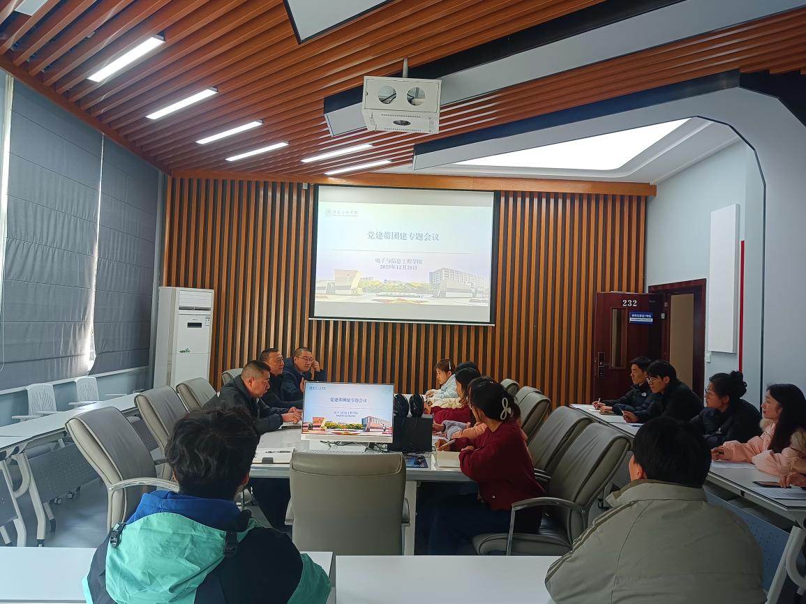 12月25日,我院在慎思楼1-232办公室召开党建带团建专题会议,旨在通过党建引领凝聚青年力量,推动学生组织协同发展,促进学生成长成才。学院党总支书记欧岚、党总支副书记黄异、副院长魏勇、学工办副主任朱怀祥参加会议;学生党员工作站、研究生会、团委学生会、电子科技协会主要负责人参加会议。学工办公室副主任朱怀祥主持会议。